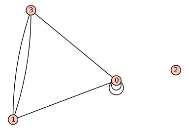 >>> G.add_edges([(Integer(0),Integer(0)),(Integer(0),Integer(0)),(Integer(0),Integer(1)),(Integer(0),Integer(3)),(Integer(1),Integer(3)),(Integer(1),Integer(3))])